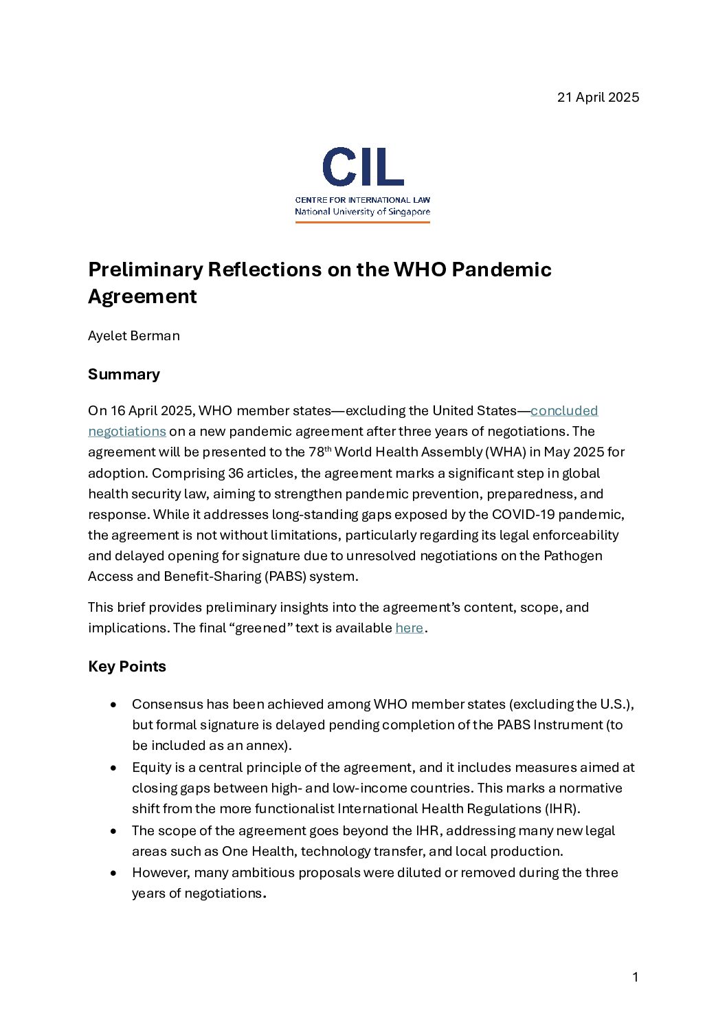 Ayelet is Associate Professor (Visiting) at the National University of Singapore Saw Swee Hock School of Public Health and the Lead of the Law & Governance Program at the Asia Centre for Health Security. She also leads the Global Health Law & Governance Program at the National University of Singapore Centre for International Law (CIL).